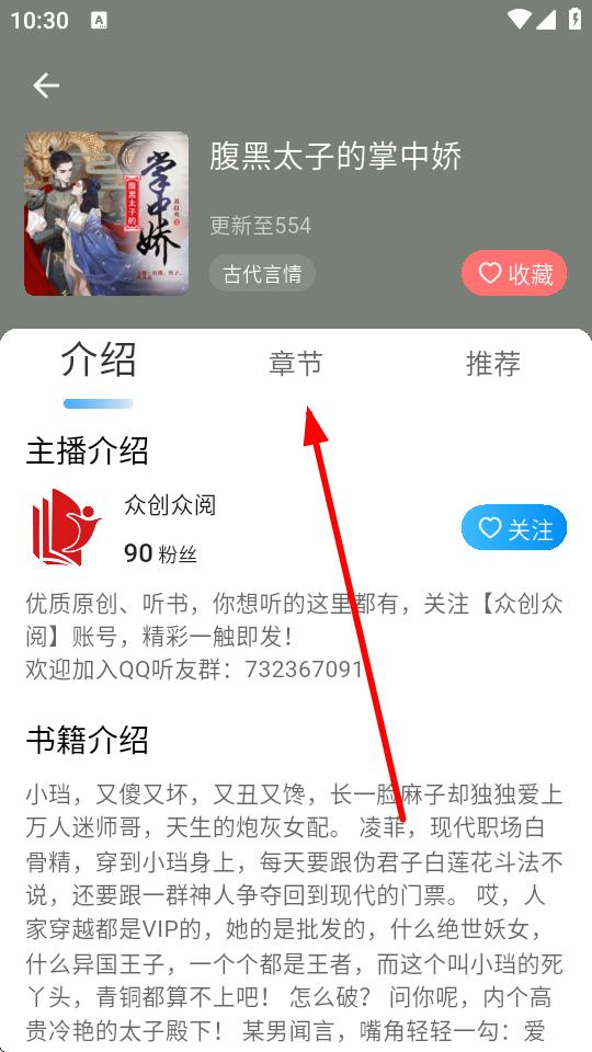 3、在书籍详情页中,点击章节选项卡,进入章节列表界面。
