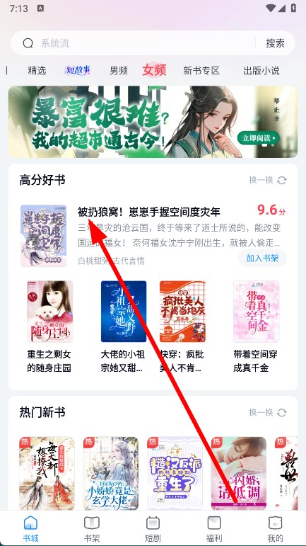 4、想后续继续阅读,点击阅读界面右上角的加入书架,之后在底部导航栏书架中即可快速找到该小说。