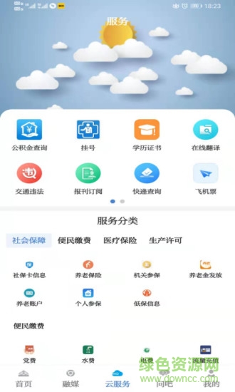 2.开通“融媒”“云服务”“问吧”“我的”四大服务类板块