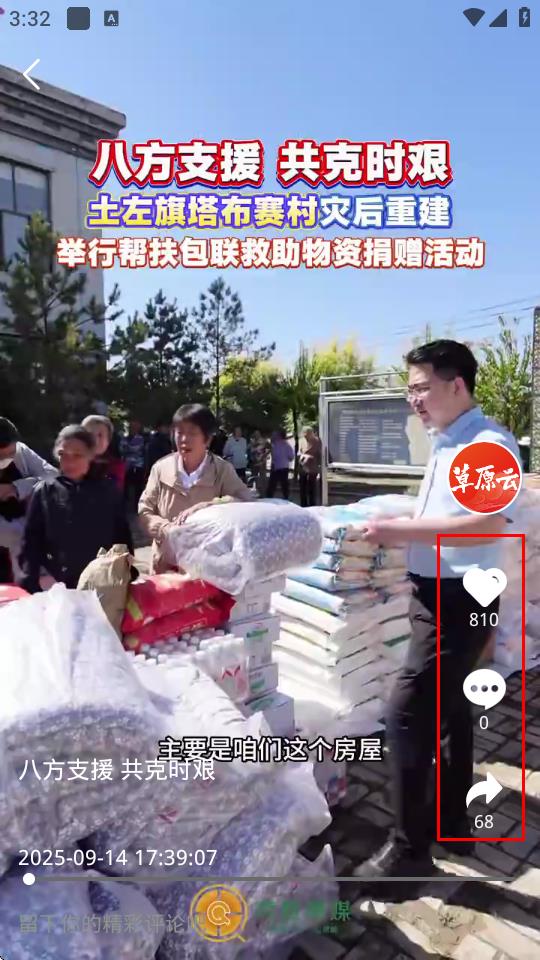 3、视频播放时,可通过右侧按钮进行点赞、评论、分享等操作。