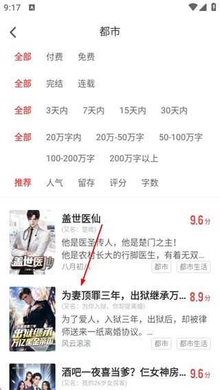 3、在都市小说列表中,选择目标小说,进入该小说的详情页面。