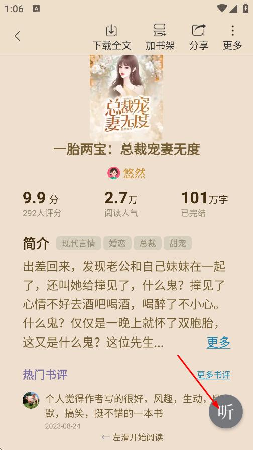 1、“绝对爽读”体验:以“绝对爽读”为核心设计,精选情节紧凑、内容优质的小说,快速进入阅读状态,获得畅快的阅读感受。