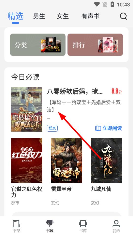 2、在书城页面,找到想要阅读的小说,比如八零娇软后妈,撩最猛军官嘎嘎乱杀。