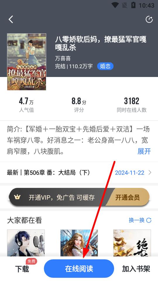 3、进入小说详情页面后,点击在线阅读按钮。