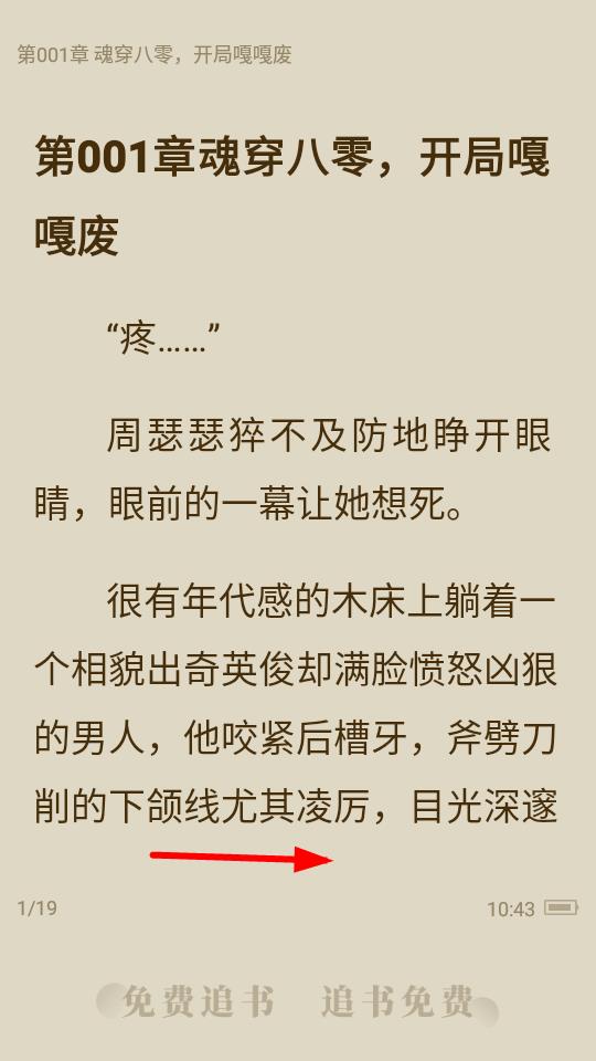 4、进入阅读界面后,就可以开始阅读小说内容,如第001章魂穿八零,开局嘎嘎废等章节。