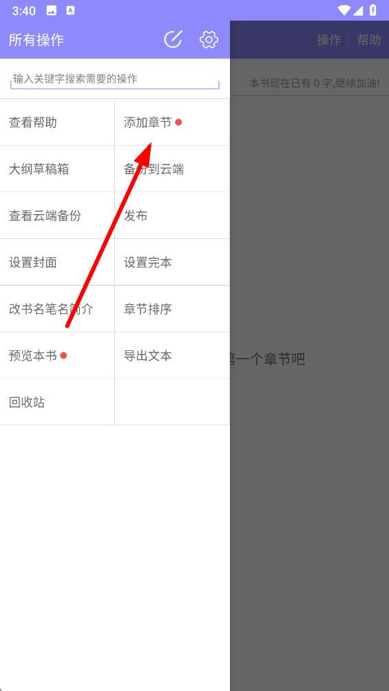 3、返回主界面,点击已创建好的小说,进入该小说操作页面。