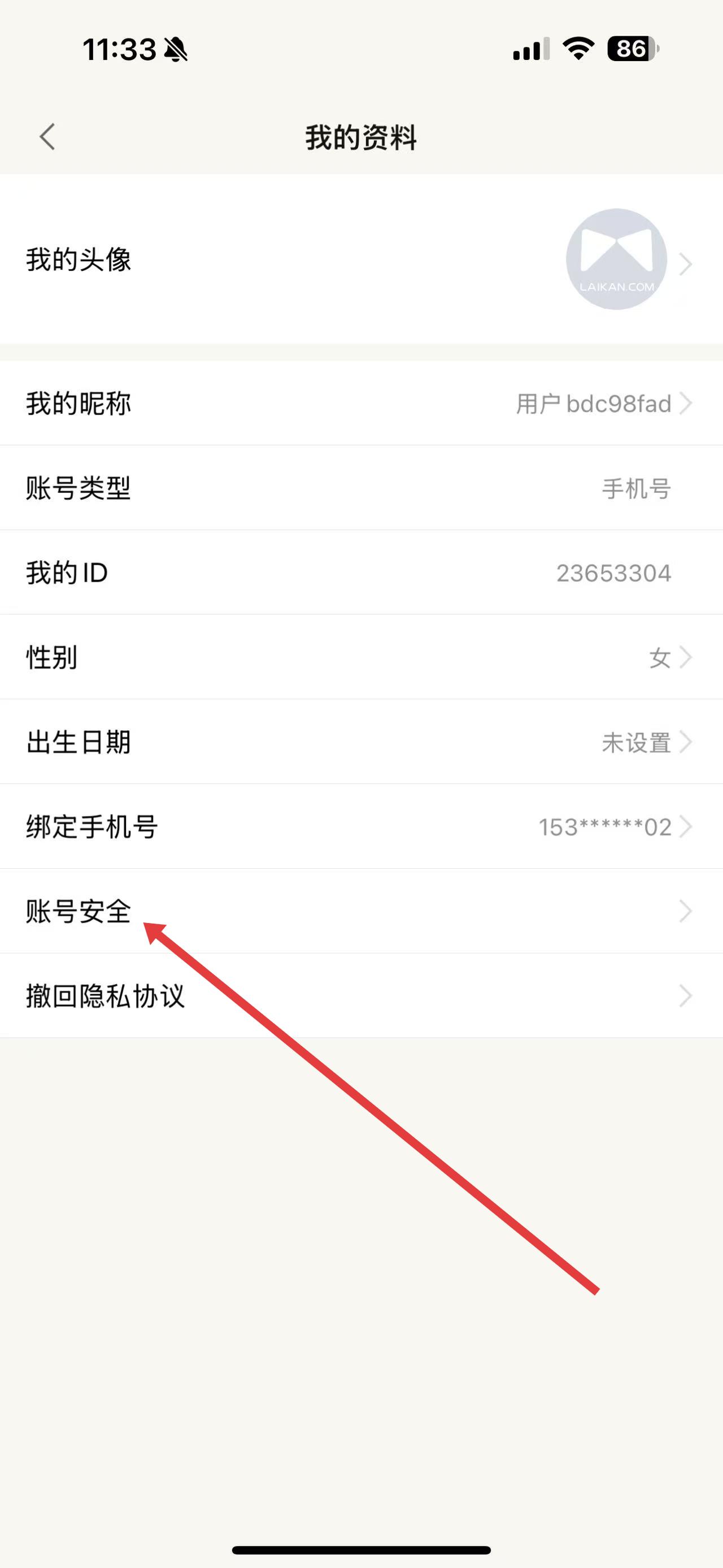 3、在我的资料页面里,找到并点击账号安全选项,进入相应设置界面。