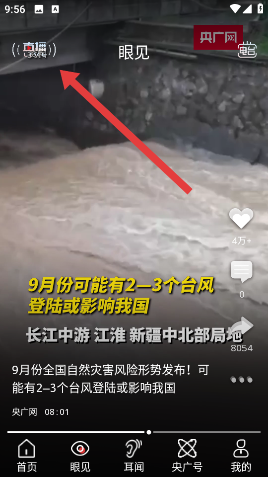 1、打开央广网APP的主页后,我们需要点击底部导航栏的眼见选项。