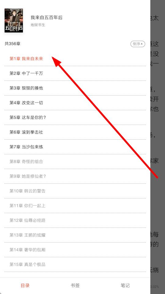 3、在弹出的目录列表中,查看各章节标题,点击可跳转阅读对应章节内容。