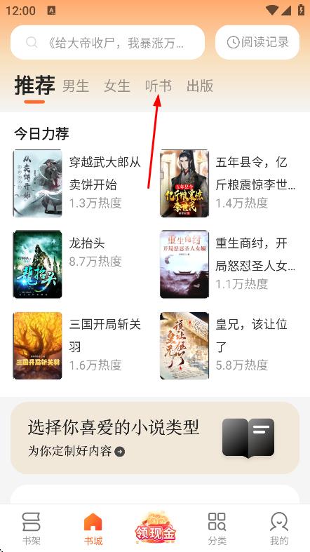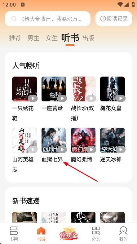 2、在听书页面,选择想听的作品,进入作品详情页面。