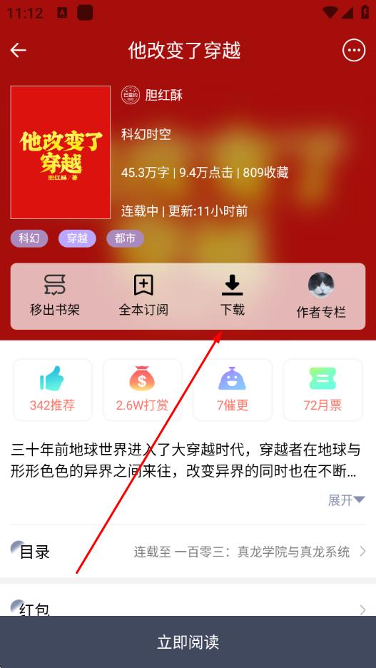 2、进入小说详情页面后,点击下载按钮。