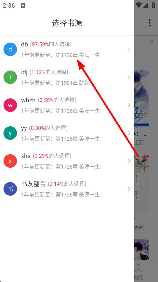 2、进入小说页面后,选择合适的书源若有多个书源选项,点击进入小说阅读界面。