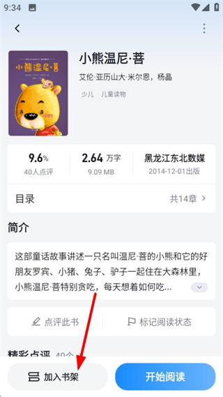 4、在书籍详情页面,点击加入书架按钮,即可将该书添加至个人书架。