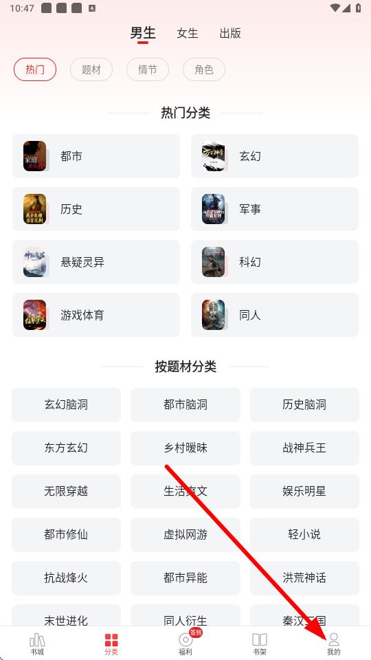 1、打开追书神器app,点击底部导航栏中的我的选项进入个人页面。