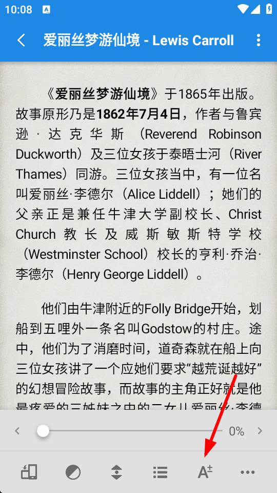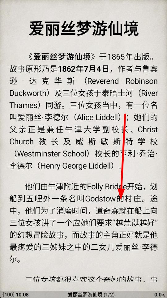 1、打开静读天下软件,在最近阅读中点击要阅读的书籍,比如爱丽丝梦游仙境。