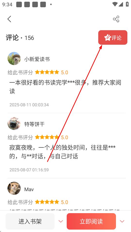 2、进入书籍详情页面后,下拉点击评论区右上角的评论按钮。