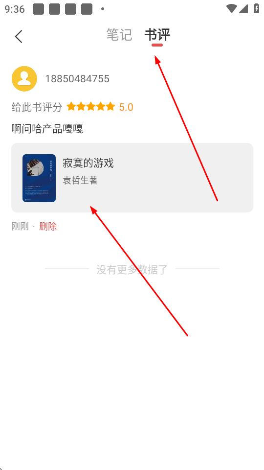 5、点击书评页面,即可查看到自己发布的书籍评价。