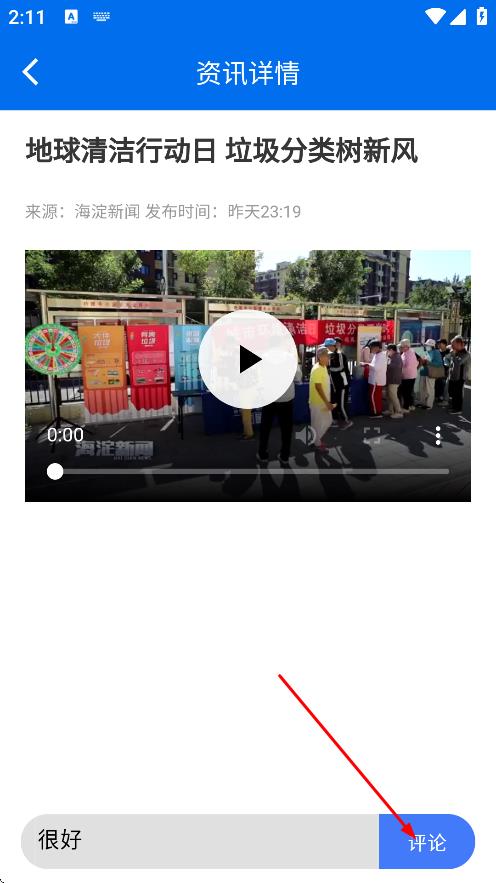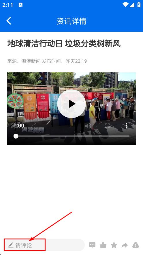 3、在资讯详情页面,点击请评论输入框,准备输入评论。