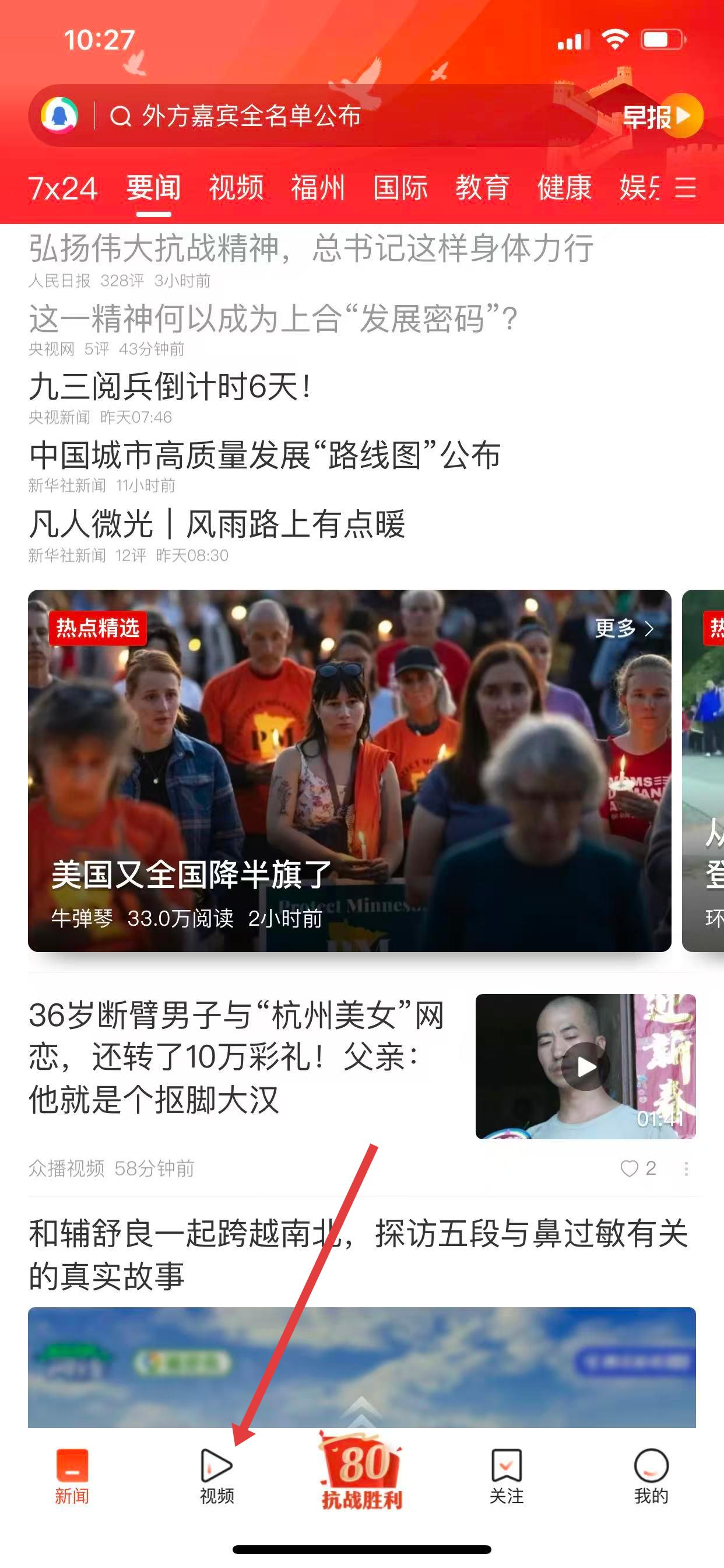 1、打开腾讯新闻APP,点击底部导航栏中的视频选项,进入视频页面。