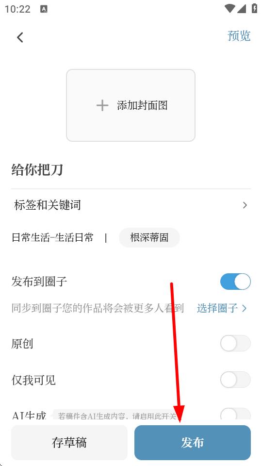 4、可按需选择添加图片、视频,设置标签和关键词等;确认内容无误后,点击发布即可。