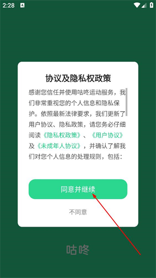 1、在协议及隐私权政策弹窗中,点击同意并继续,进入登录选择页面。