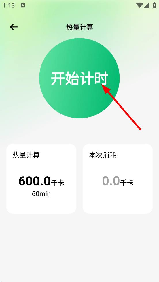 3、进入热量计算页面,点击开始计时,开始记录运动。
