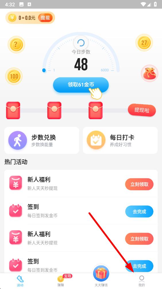 2、提现金额,快速到账,走路步数转换为金钱