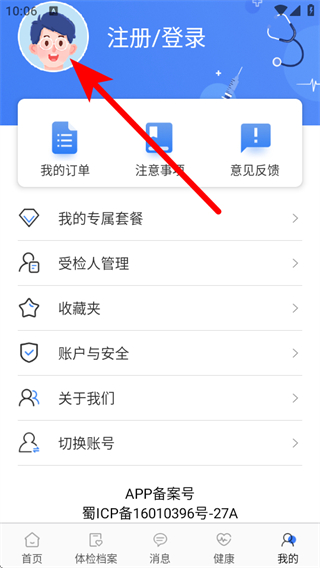 1、打开华西健康,点击右下角我的,进入个人功能页面。