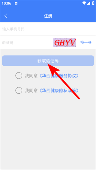 4、输入手机号、验证码并勾选协议后,完成华西健康账号注册操作。