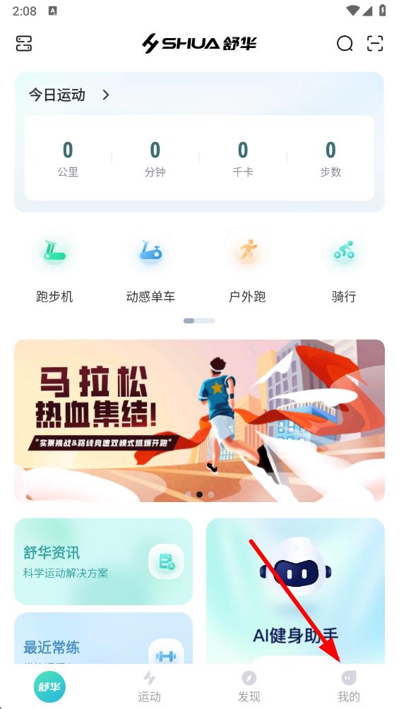 1、打开舒华运动app,点击底部导航栏最右侧的我的选项。