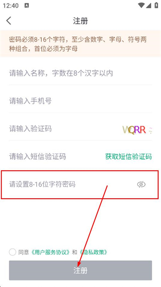 4、在注册页面,设置完密码后,点击注册完成账号注册。