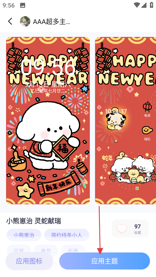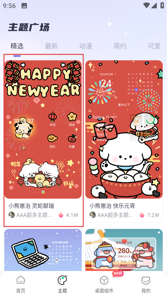 2、在主题广场页面,选择喜欢的主题,比如灵蛇献瑞点击进入。