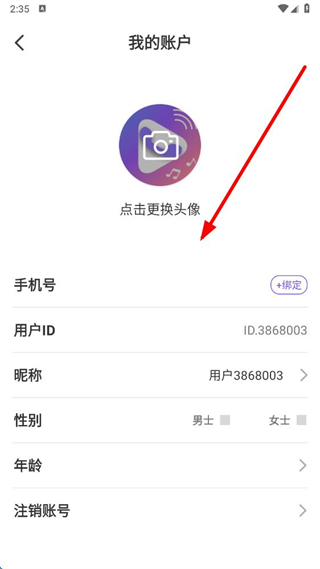 4、在我的账户界面,可修改头像、昵称、性别、年龄等个人资料,完成后即可保存修改。