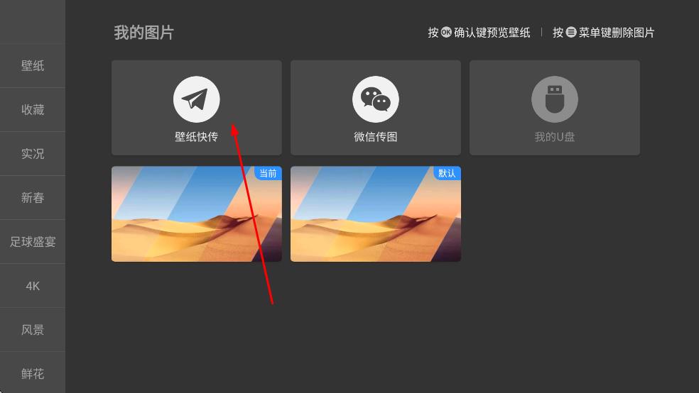 2、进入“我的图片”页面,点击“壁纸快传”功能,可通过对应方式传输新壁纸。