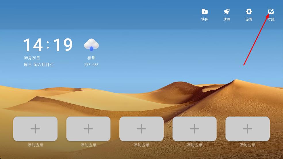 1、在桌面顶部找到“壁纸”图标,点击进入壁纸屏保设置界面,选择“壁纸设置”选项。