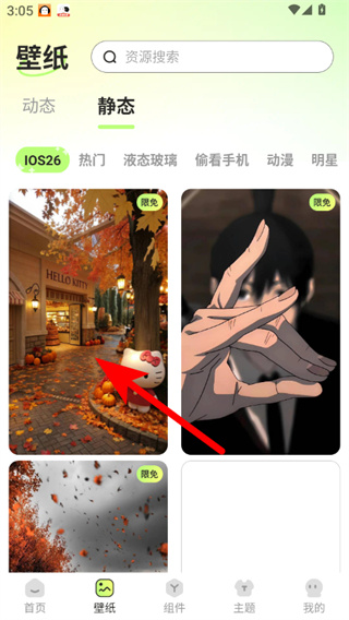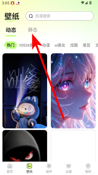 2、在壁纸页面,点击静态选项,进入静态壁纸选择界面。