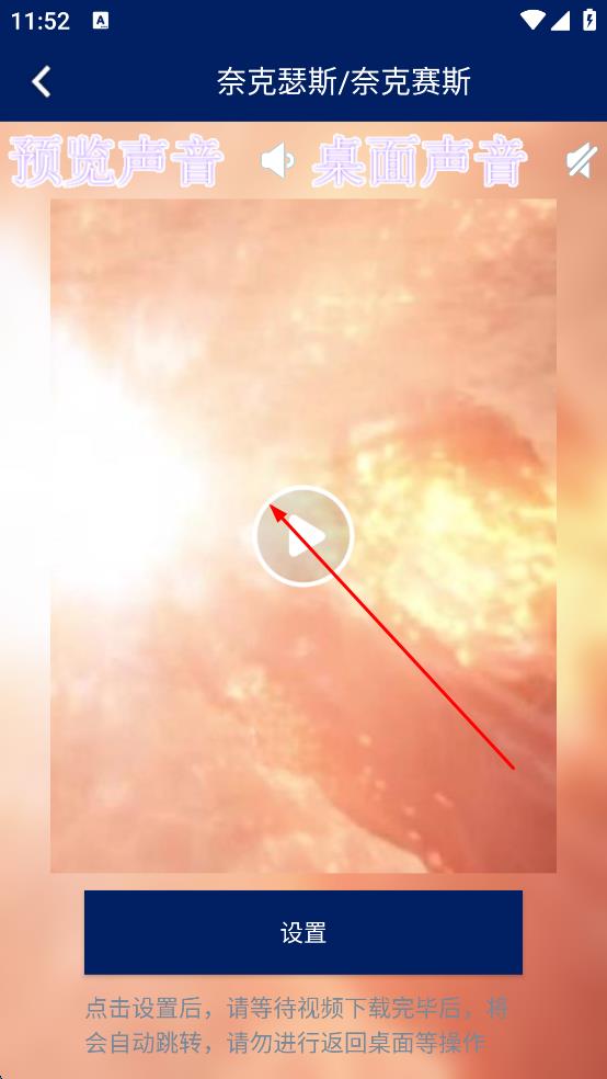 2、在壁纸详情页面,点击播放按钮预览壁纸动态效果及声音,确认是否符合喜好。
