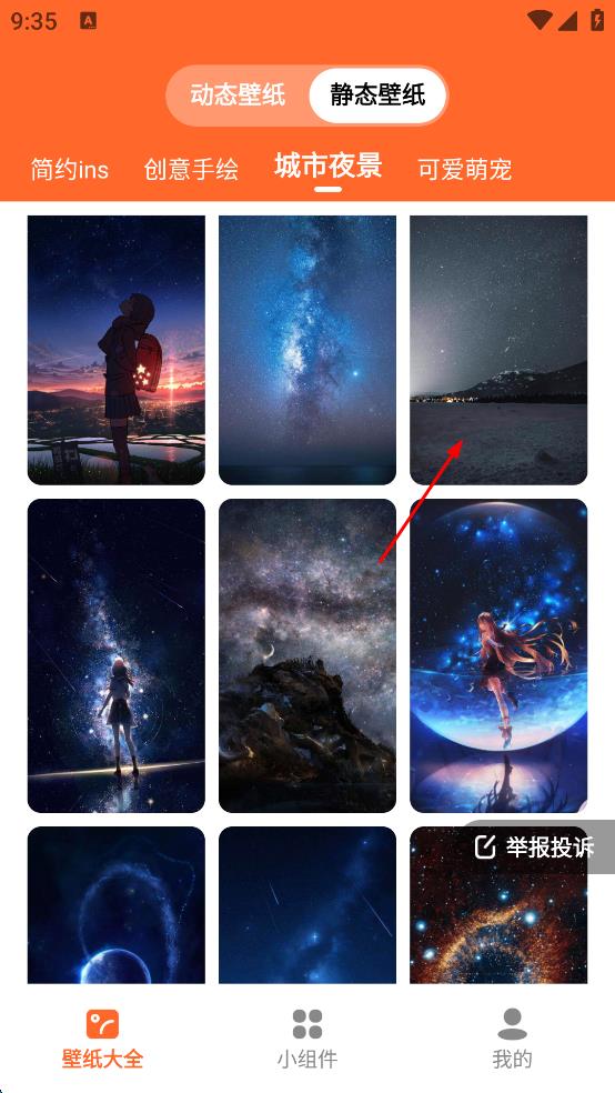 1、打开壁纸大全软件,进入后在顶部找到“静态壁纸”选项,点击切换到静态壁纸页面,接着在下方分类里选择需要的分类,浏览该分类下的壁纸。