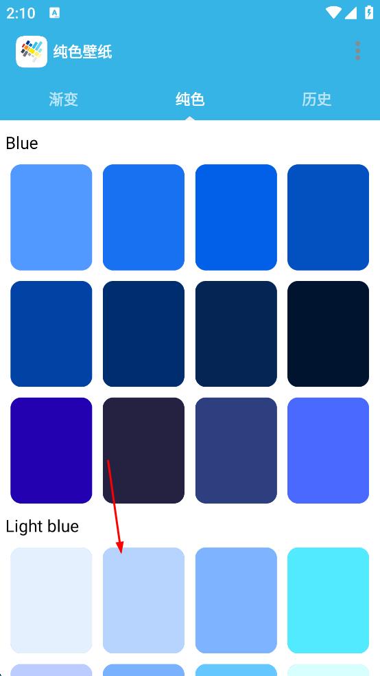 2、在纯色壁纸选择页面中,找到浅蓝色的纯色壁纸选项,点击该浅蓝色壁纸,进入壁纸预览页面。
