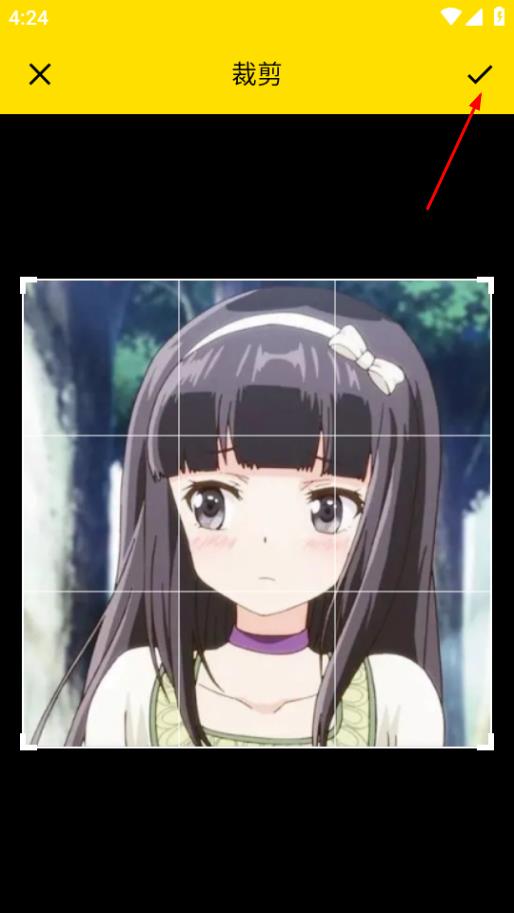 3、在裁剪页面,裁剪好图片后点击右上角的对勾,进入表情编辑页面。