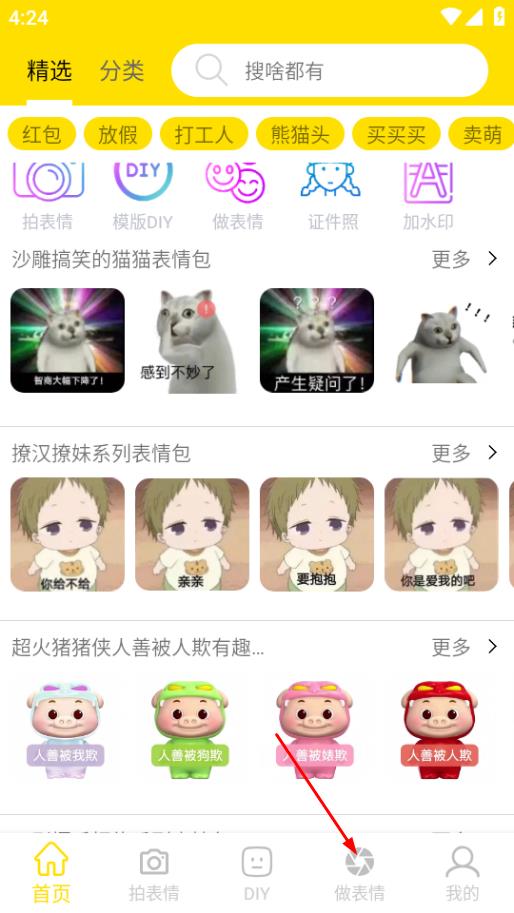 2、开启制作功能:进入表情制作界面,选择基础素材,使用内置的专业工具添加文字、贴纸、特效等元素,调整表情细节,打造个性化风格。