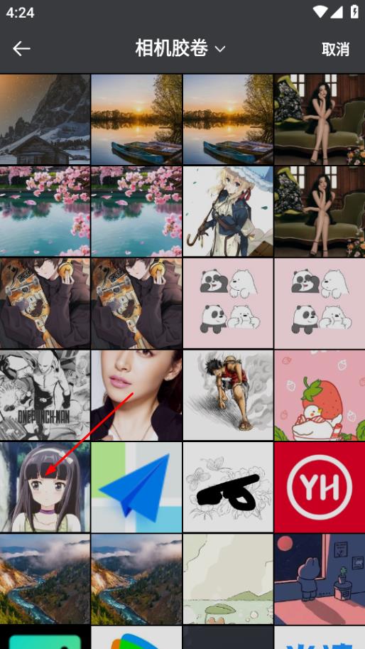 2、在相机胶卷图片选择页面,选择要制作表情的图片,进入裁剪页面。