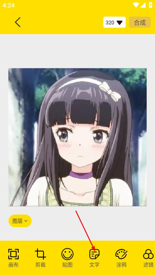 4、在表情编辑页面,可点击文字选项为表情添加文字元素。