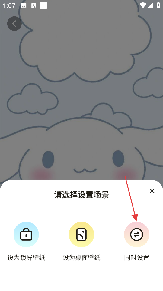 4、在设置场景选择框中,选择同时设置,将该壁纸设为锁屏和桌面壁纸。