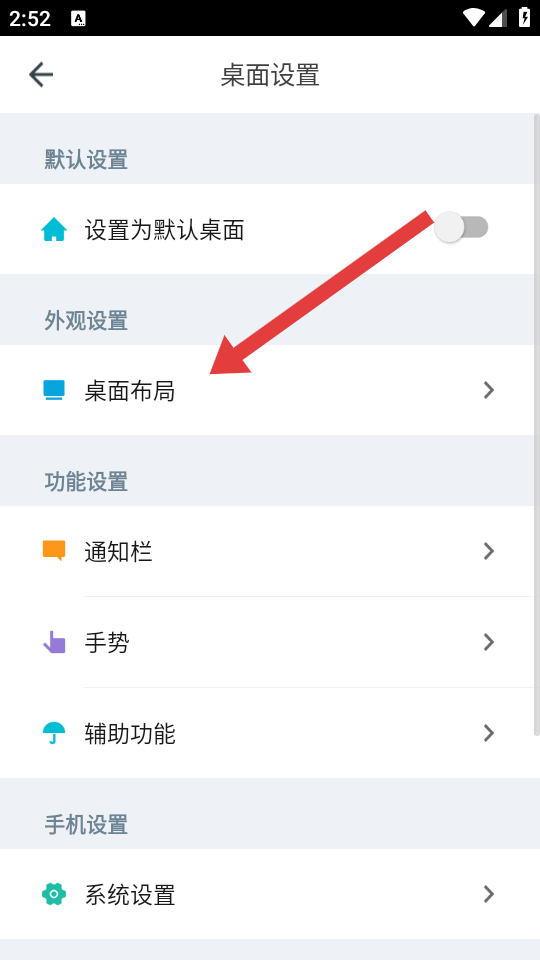 2、在桌面设置页面中,找到桌面布局的选项并点击,进入桌面布局设置页面。