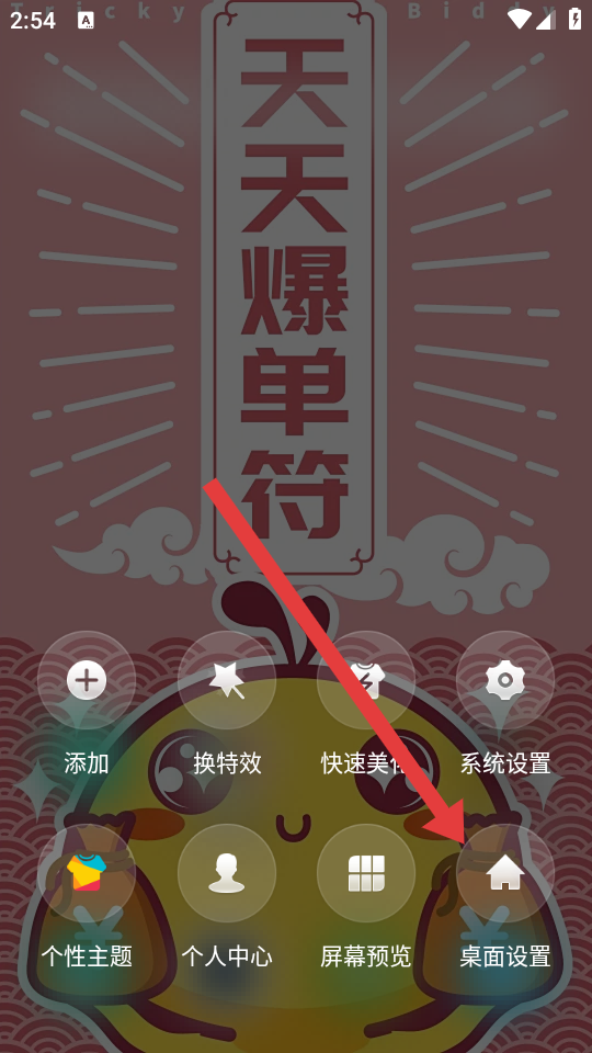 1、在91桌面的主屏幕上,长按空白区域调出操作菜单,点击桌面设置,进入桌面设置界面。