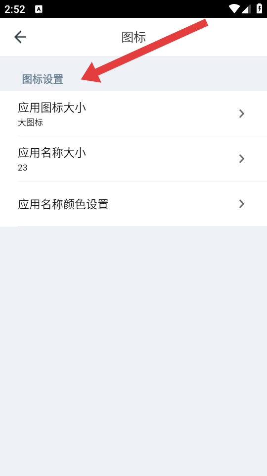4、在图标设置页面,可以对应用图标大小等进行调整,完成图标相关样式的修改。