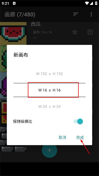 3、最后进入对应规格的画布编辑页面,可进行像素画创作操作。