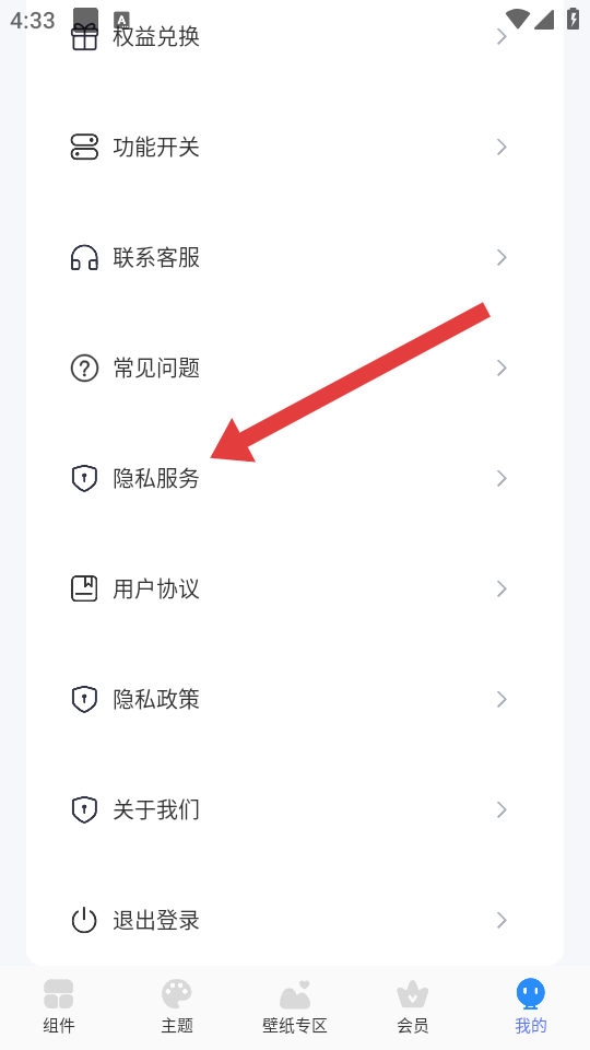 2、在个人中心界面,点击隐私服务选项,进入隐私中心的页面。