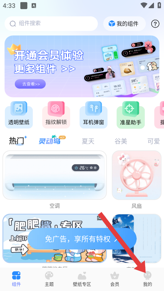 1、打开主题小组件美化APP,点击底部导航栏我的选项,进入个人中心界面。